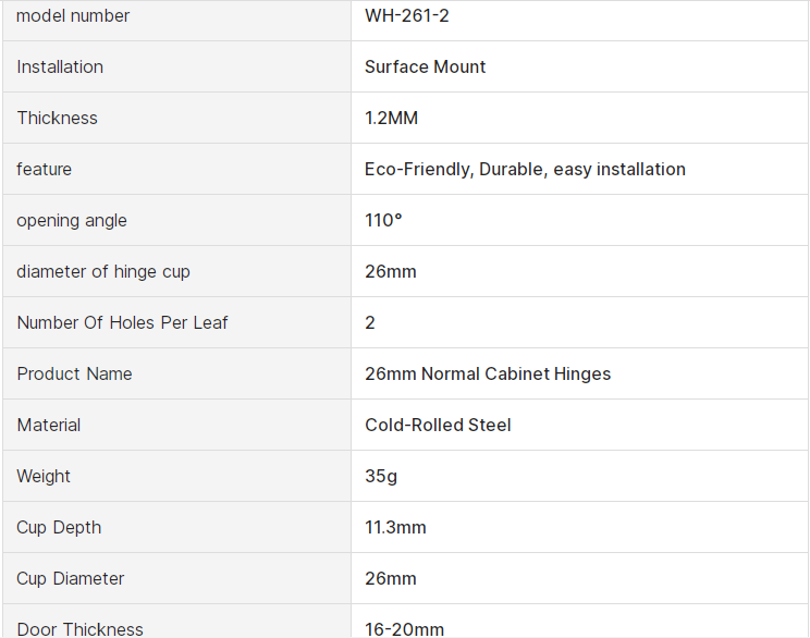 One Way Cold Rolled Steel Normal Cabinet Hinges