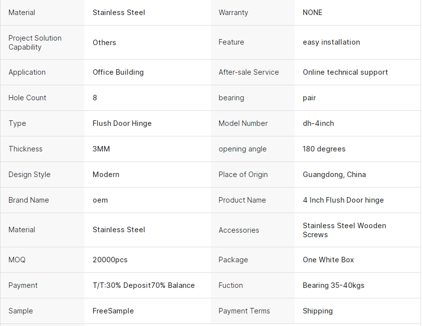 4 Inch Stainless Steel Butt Hinge